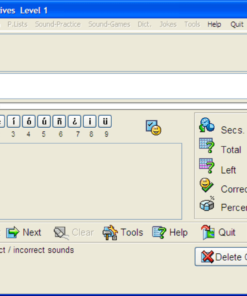 The program’s interface will be a blessing to computer users of all skill levels. With simple icons that do a good job of describing their function, users need only hold the cursor over each for a more in-depth description to pop up. A Help file is also available, which focuses on program functions and not Spanish language. Users begin by choosing what level of competency they are at with three level buttons. From here, users can choose from a range of icons across the top for tools like Listening Comprehension (a voice repeats letters and words for users to hear), Dictation (users hear a word and must write it down), and a Spanish-to-English dictionary.